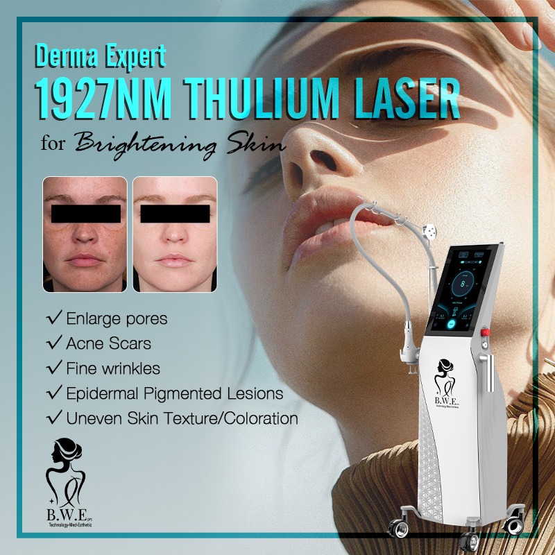 The working principle of the thulium laser is to tighten pores, reduce fine lines, and firm the skin by stimulating collagen production and inducing its contraction.