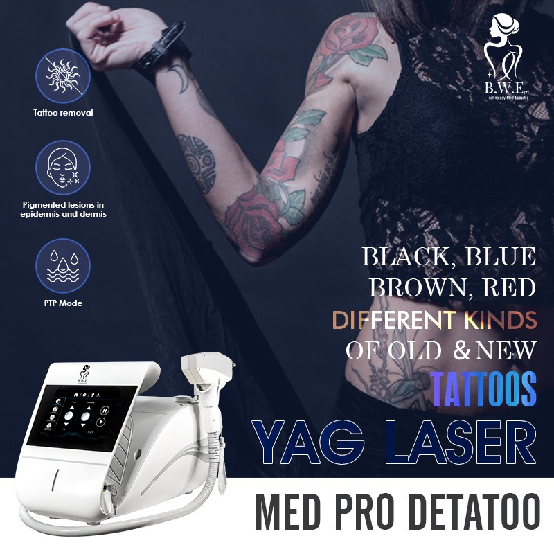 It comes with 3 different treatment tips: (532 nm + 1064 nm + 1320 nm) 532 nm tip: epidermal pigmented lesions, tattoo removal (red, yellow, coffee); 1064 nm tip: dermal pigmented lesions and dark tattoo removal; 1320 nm tip: rejuvenation, brightening, firming and unification of the skin texture.